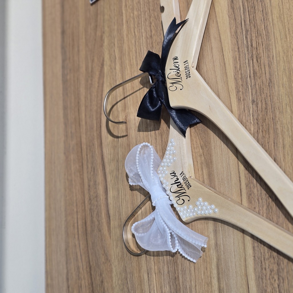 به جای استفاده از آویزهای ساده، این هنگرهای سفارشی به لباسها و استایل مراسم شما هویت میبخشند. جزئیات مرواریدی در عکسها درخشش خاصی ایجاد میکند و حک اسم، ارزش یادگاری آن را چند برابر میسازد.
