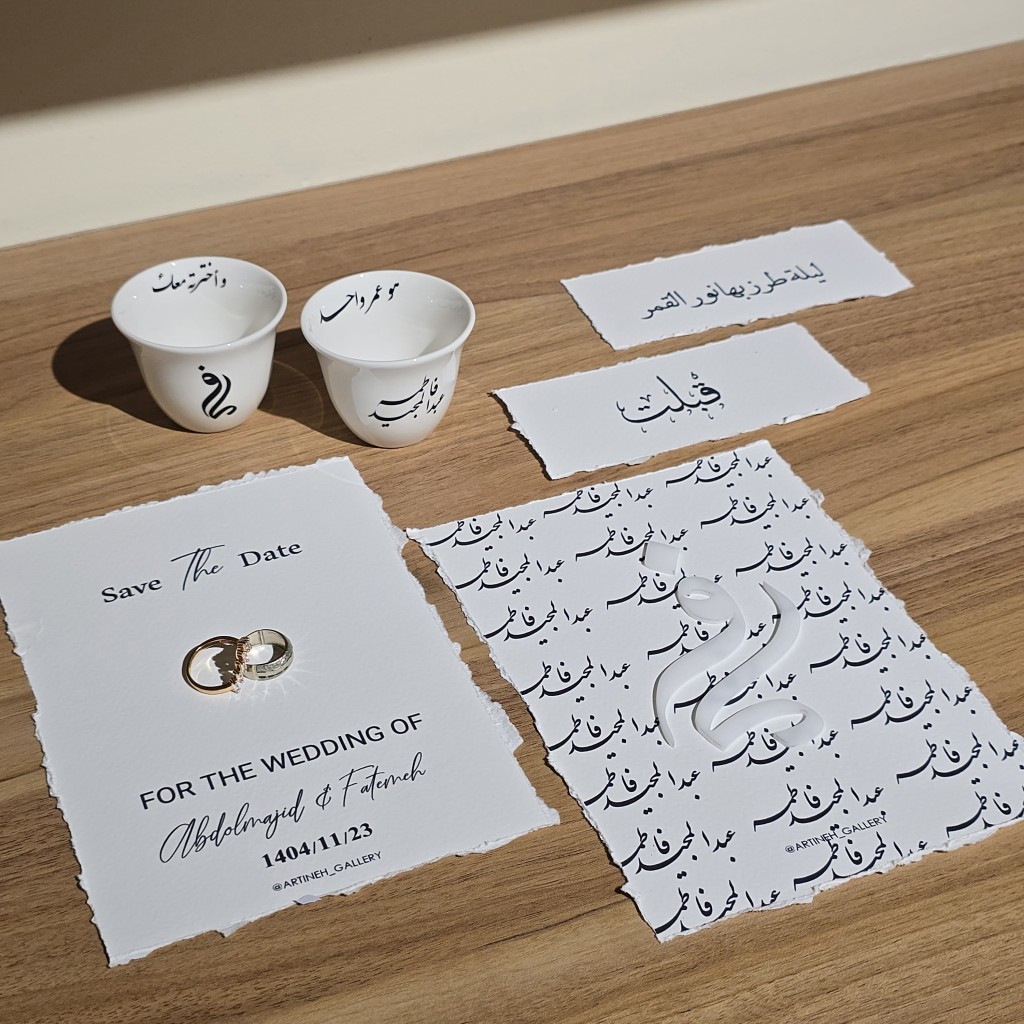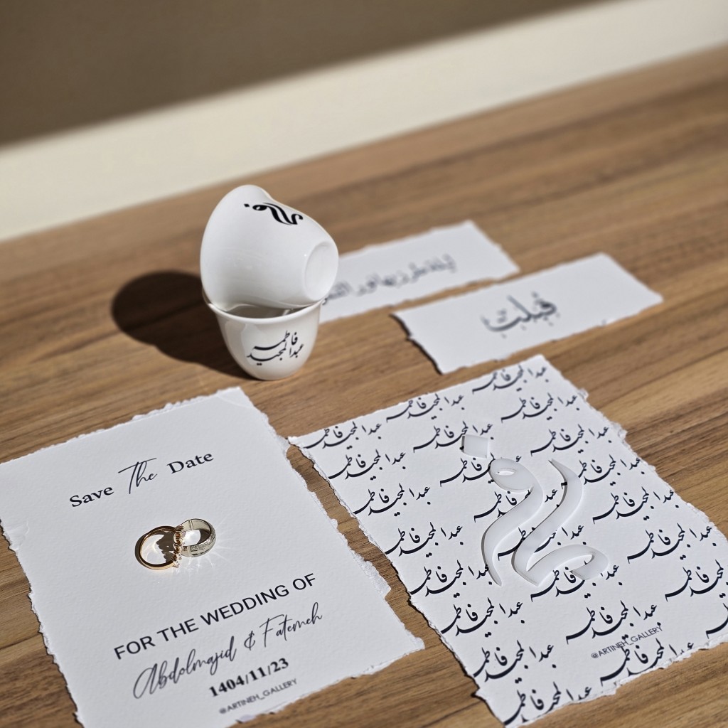 یک کارت برجسته (که کارت زیرین اسم عروس داماد و روی کارحروف اول اسم عروس داماد با پلکسی سفید اجرا خواهد شد)