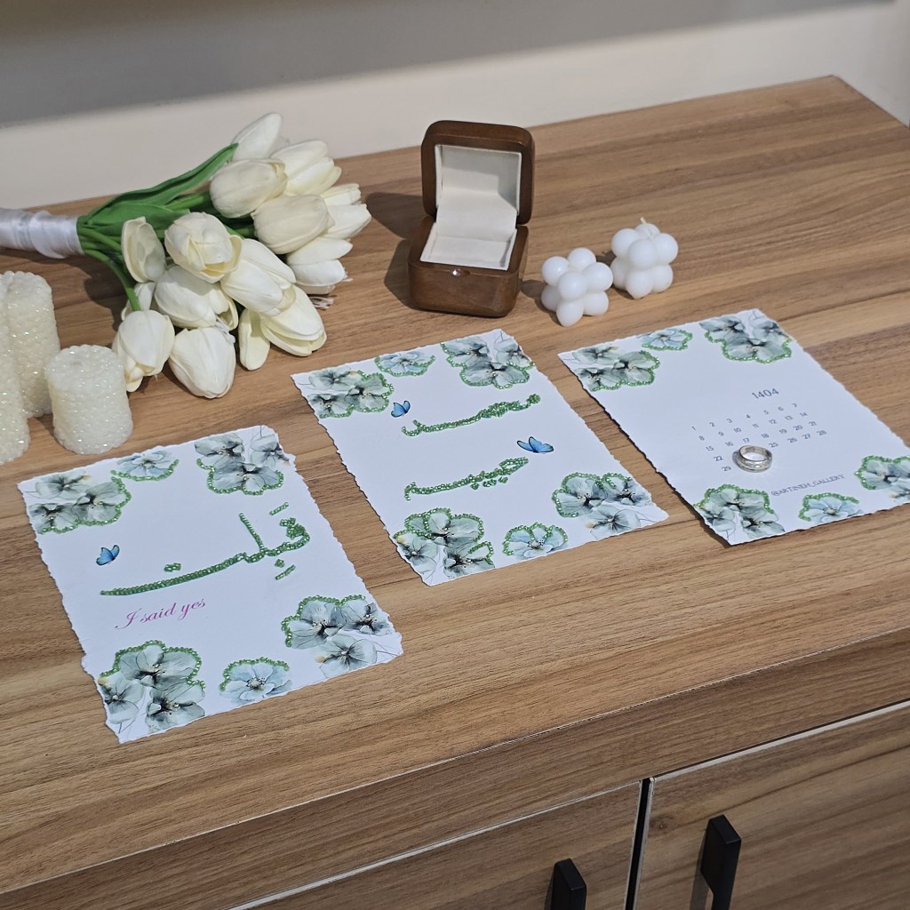 همه کارتها با ملیلههای ظریف و کاغذ مرغوب طراحی شدهاند تا حس ظرافت و عشق را تداعی کنند.